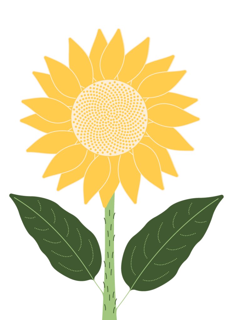 O girassol representa a felicidade, e sua cor simboliza o calor, o entusiasmo e a vitalidade. É uma das flores mais conhecidas do planeta, cultivada para produzir sementes, óleo e outros produtos, além de encantar! Enquanto está crescendo, o girassol amanhece olhando para o leste, a direção onde o sol nasce, e vai girando para acompanhar o movimento do astro rei, até ele se pôr na direção oeste. Durante a noite, ele gira de volta para o leste, esperando o sol nascer novamente.